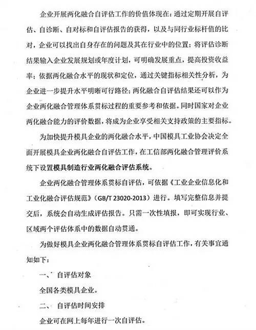 转发“关于开展模具行业两化融合自评估工作的通知”