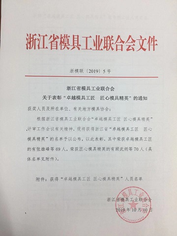 关于表彰“卓越模具工匠 匠心模具精英”的通知